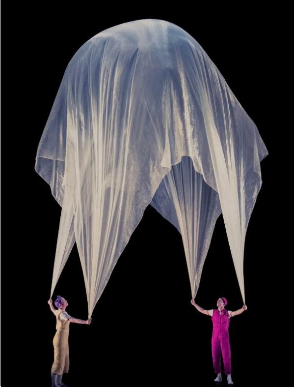 “御风翱翔,梦伴起舞”这部以“空气雕刻”为主题的现代舞台奇观,同时也是描绘一对兄妹神奇的冒险经历:在超现实空间里,最普通的小物件,也都被赋予了令人惊艳的美感。薄纱随风飞舞,气球有了生命,五彩纸屑飞升为灿烂的星空,一片巨型的丝绸华盖,悄悄改变了众生彼此的命运。