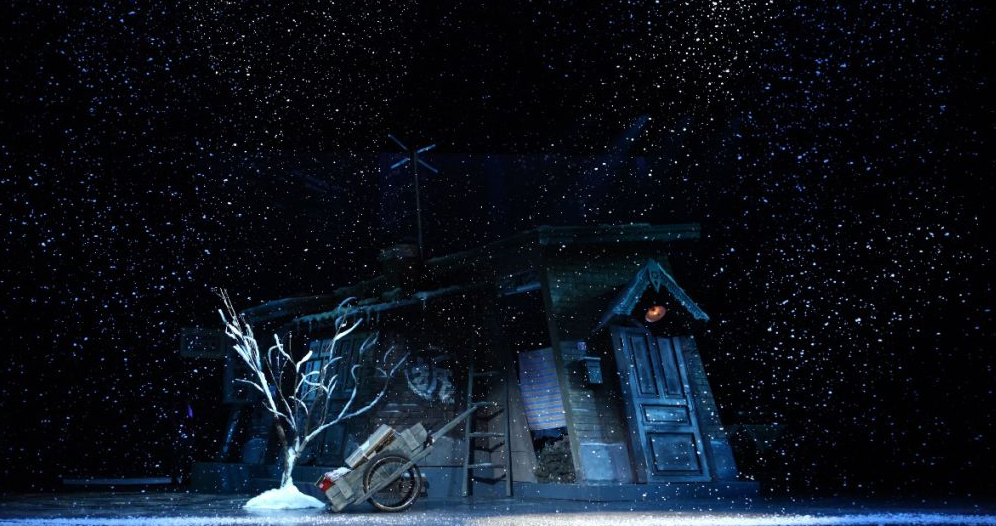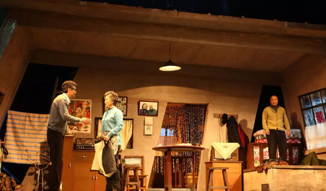 《良宵》的舞台布景搭建在一个可以旋转的舞台上,随着舞台的转动,上世纪九十年代的老旧宅院展现在观众面前,剧中人物手里拿的老物件、人物的衣着打扮,一个手推车,一个手风琴,一卷旧磁带,一个搪瓷缸,屋子里的一桌一凳,屋子外面的一砖一瓦,都能勾起人们对往昔的回忆。