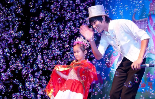 泡泡秀起源于韩国,是风靡全世界的亲子互动秀,由小丑开场带孩子的家长们走进一个由泡泡组成的魔幻世界,这里有透明泡泡、烟雾泡泡、彩虹泡泡、水母泡泡、双龙泡泡、泡泡合体、泡泡隧道、魔法泡泡帽、漫天泡泡雨等上百种泡泡,是你前所未见的壮观场面。
