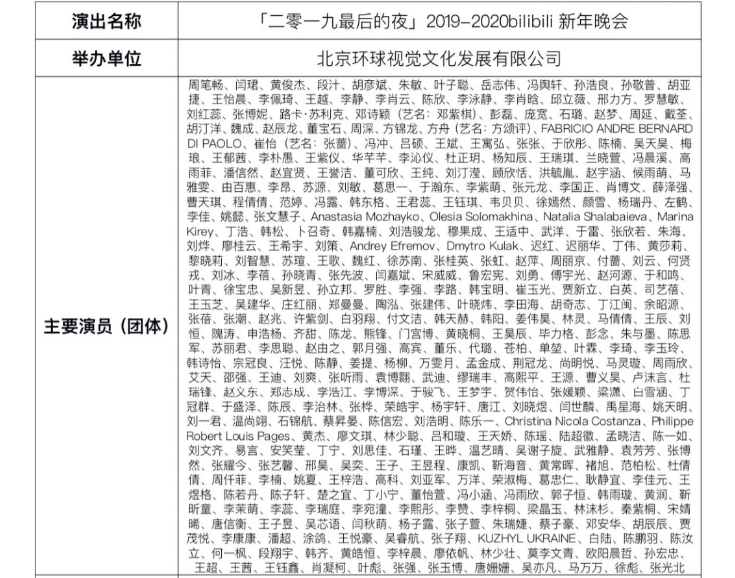 2019bilibili新年晚会演出节目单: