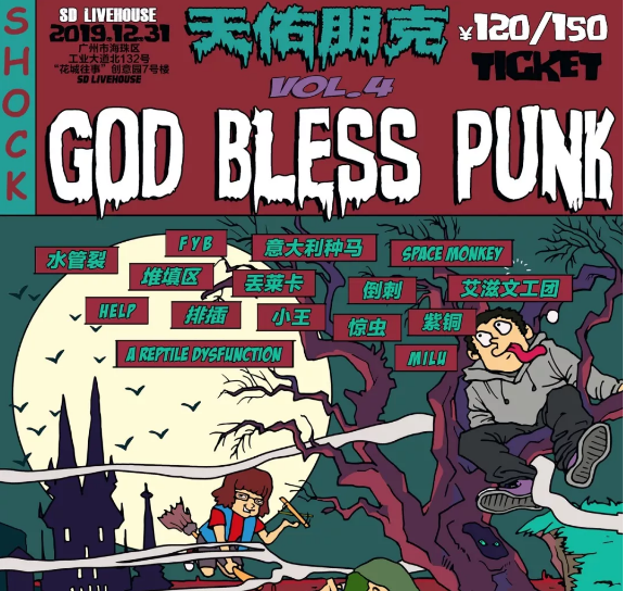 今年跨年夜,我们在老地方SD Livehouse举办天佑朋克Vol.4,不可思议,这已经是第四届了,希望你们这些可爱的混蛋可以好好珍惜!如往常那样带着所有负能量在2019的最后一天,和我们一起发泄!