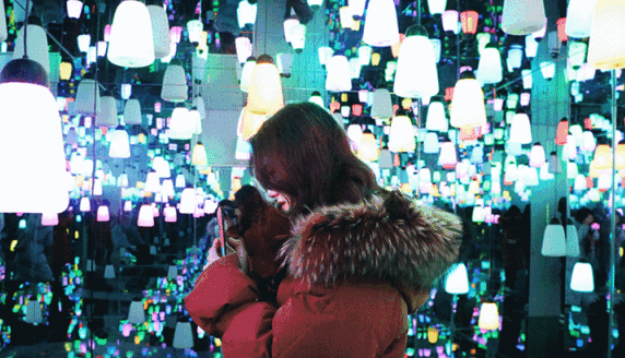 大概每个女生都对blingbling、闪闪发亮的东西毫无抵抗力。而梵高星空展上的这枚“钻石”,美丽的不可方物。不规则的镜面反射着斑斓的灯光,真的犹如无数闪闪发亮的钻石墙,站上钻石之眼,你就是整个展馆最闪亮的仔,张张拍出星光大片!