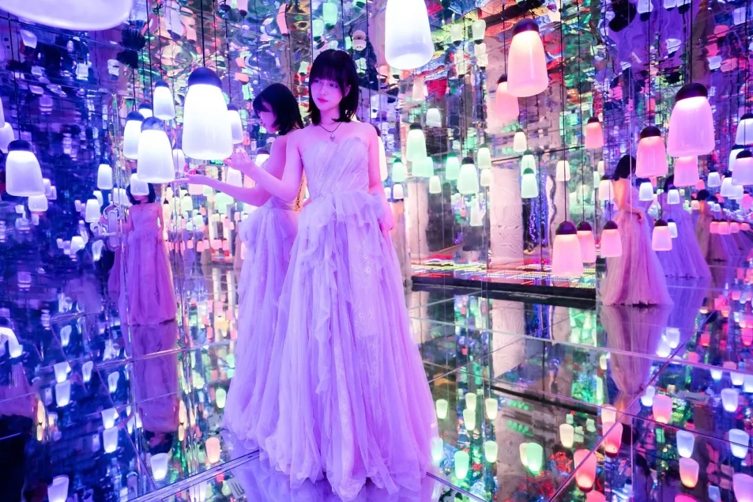 星星是有“魔力”的,每次看到星星,内心都会感到平静和安宁。现在,星星不在远远的天边了,它们搬家搬到梵高星空艺术馆。无数个不规则的六边形的灯盏组成了一片浩瀚的星海,五颜六色的灯光折射到脸庞,梦幻浪漫的感觉就像一场甜甜的恋爱啊!