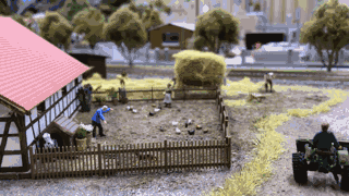 在这个微观世界中,有一条蜿蜒曲折的火车轨道,可爱的火车在上面“哐当、哐当”的自动行驶着。随着火车行驶,你可以看到白雪皑皑的雪山小镇,满载货物的港口,钢筋铁泥漫布的工业区和宁静美好的乡村……这些活灵活现的场景由100多列会自动运行的火车模型、2000多米长的模型轨道、近1000座欧式建筑、10000多盏灯、8000多棵树木、60000多个栩栩如生的小人等构成。如此算来,制作这个微观世界的工程量可谓是十分的浩大!