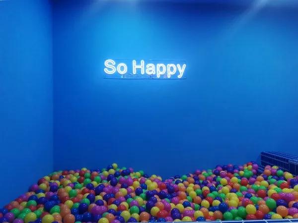 即使我们都不再是小孩子了,但都要保持着孩子气,享受天真带来的乐趣,而海洋泡泡池便是一个可以让我们享受到孩子般快乐的地方。它是一个天蓝色的房间,里面放置了满满当当的泡泡球。置身在其中,就像回到了小时候去游乐场的场景。