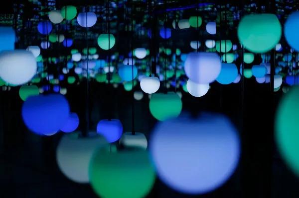和传统意义上的星空不同,星空展中的星星五彩斑斓。许多闪烁的小灯球被悬挂在屋顶,像是一颗颗挂在天际的小星星,散发着五颜六色的光芒,这些光芒在漆黑的房间中形成了流动的光影,简直是美不胜收!