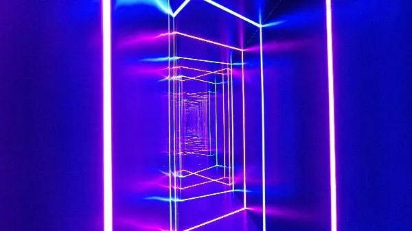 紫色代表神秘、未知,蓝色代表静谧、幽深,而当这两个颜色碰撞在一起,会产生什么化学反应。这个答案,由时光隧道告诉你。它采用紫色和蓝色灯管,为我们塑造了一个神秘、幽静的时光隧道。