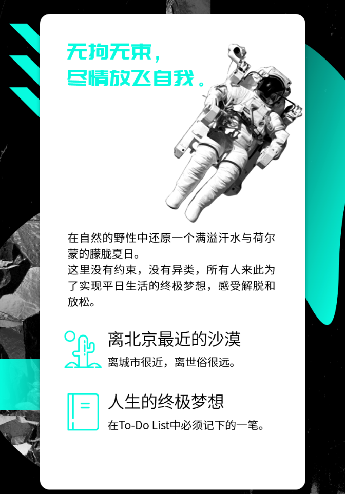 MTA天漠音乐节一直以世外桃源般的景致被歌迷称为“漠星宇宙”,数万人在这里解放自我,追逐梦想,释放满溢的多巴胺和汗水。