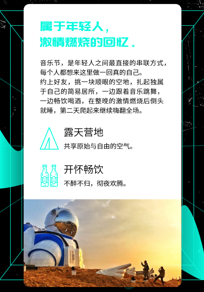 来吧!来这里吧!那些散落在全国的“漠星居民”,聆听这启程的号角声吧!让我们以5周年之名,跨越时间与空间的维度,齐聚这场狂欢派对。在2021MTA天漠音乐节,正式来临之前,用一波又一波炙热的音浪唤醒我们,沙漠与音乐的记忆。