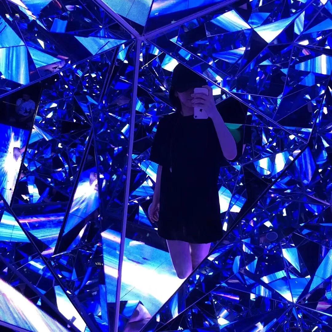 钻石隧道——这是一间堆砌了众多面镜子的房间,无数块镜子被按照不同的角度放置,为大家营造了一种空间视错觉,让你感觉自己好像身处在无数颗巨型碎钻中。对于这个房间,小编只想说, blingbling的,太闪了!