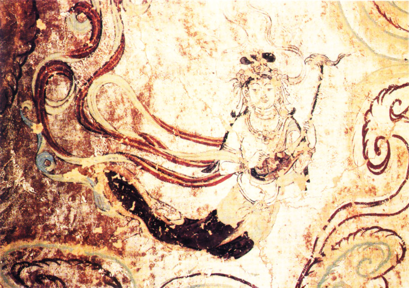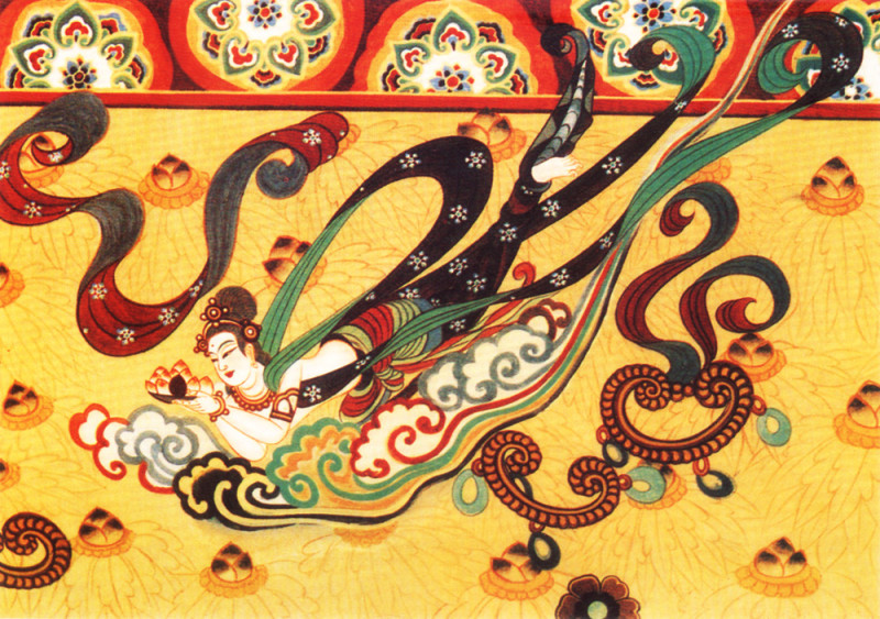 《飞天》同样也是敦煌壁画有名的作品之一,在各个朝代的敦煌壁画当中,几乎都有这幅画的一席之地。而《飞天》也随着历代朝代的更替,不断被诸多画师结合各朝代特色,呈现在敦煌壁画当中。