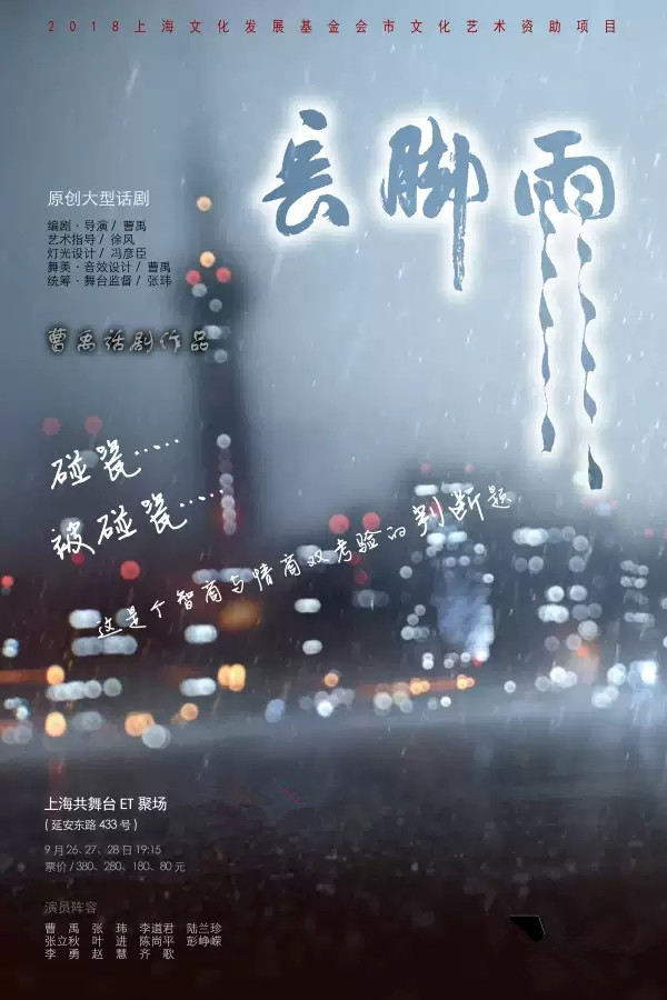 2019原创大型话剧《长脚雨》-上海站,将于9月26日在ET聚场(上海共舞台)演出,届时欢迎大家来观看,这是一部讲述人与人直接微妙关系,和残疾人与正常人并无差别,他们能更自强,更让人敬佩。