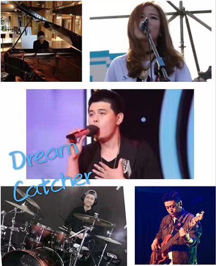 dream catcher,我们在起乐队名字的时候,也想了很多名字,但是最后觉得dream catcher更贴合我们对音乐的态度,年少时带着憧憬义无反顾的去追寻自己想要的梦。dream catcher成立于北京,乐团旨在不忘经典,奉献经典,秉承多元化音乐风格,现场演出经验丰富。主唱沙威为深情歌手,擅长粤语、国语经典老歌。吉他手塔娜,擅长声乐编曲爵士和声。国家4级演奏员。键盘手李强,青年爵士钢琴演奏家,在钢琴演奏及爵士乐上有很深的造诣演出经验丰富,享有盛誉。鼓手范文杰,毕业于北京迷笛音乐学校,北京“琴国乐器”公司蘑菇音乐培训鼓教师。贝斯王伟, 持续参加各类音乐演出及比赛,并受到专业人士的肯定与喜爱。曾参加过 :《草莓音乐节》 《国际游牧音乐节》 《卓扬岛屿音乐节》《2011星光大道年度总决赛》《北京卫视春晚》 《第二届Levi’s原创音乐大赛》等大型演出。