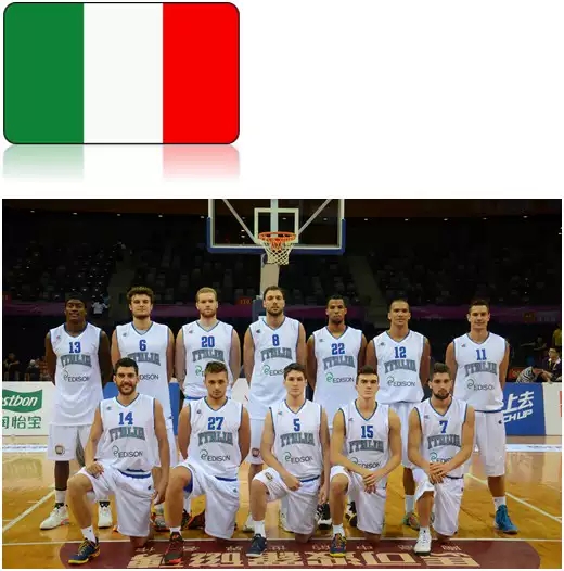 意大利队是来自欧洲的传统老牌劲旅,他们也是获得欧锦赛奖牌最多的球队。意大利男篮以配合默契,技战术精湛,作风顽强著称。同时,意大利队也培养出许多优秀的球星:现效力于NBA快船队的看家球星加里纳利,马刺队的贝里内利。尽管近些年欧洲其他国家篮球水平不断提高,但意大利队在欧洲依旧实力突出。
