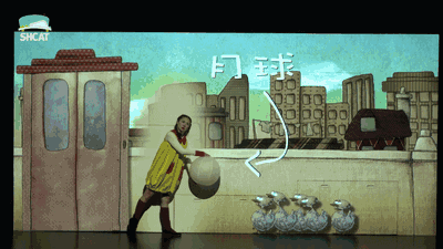 《我要飞,去月球》以孩子的视角,运用投影动画将观众带到了一个完全不同的世界。在动画场景中,一个不可能的任务与舞台上唯一的演员融为一体。在演出过程中,动画与真人的巧妙结合和各种充满新奇创意的舞台表现,让您在观演中忍不住惊呼原来还能这样表演!
