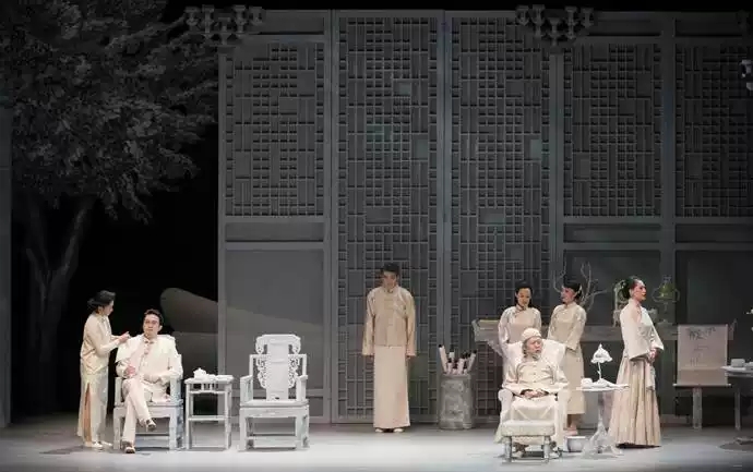 演出开始,当大幕徐徐拉开,一个既充满旧时中国精致优雅情调,又极有当代视觉审美和内涵、以满台白色为基调的舞台出现在观众面前,一下子就让整个剧场沉静下来。