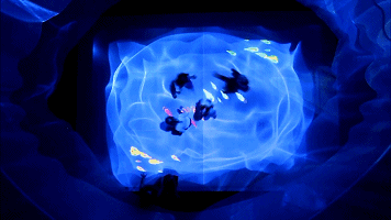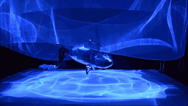 而这一次,舞台上不仅有“魔毯”,还有舞台上空漂浮着的“魔法纱幔”——时而是星空,时而是海浪,时而是海底的层层暗流……