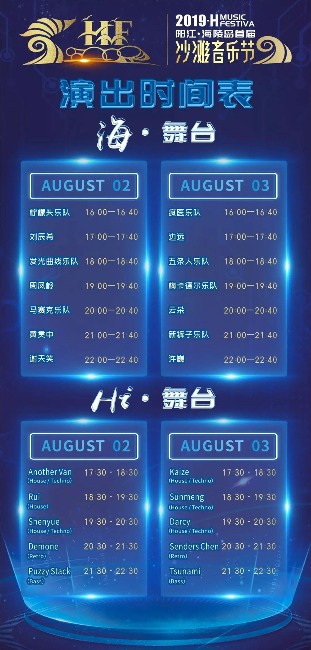8月2日—8月3日,在中国阳江海陵岛举办如此规模盛大的音乐狂欢活动,是粤西地区近年来最具规摸最有号召力的音乐盛会,也是近二十年来阳江地区最大的音乐盛会,更是阳江本土乐迷一直翘首期盼的。其规模之空前,水准之高超,将在阳江海陵岛乐坛上写下具有历史性意义的一笔。