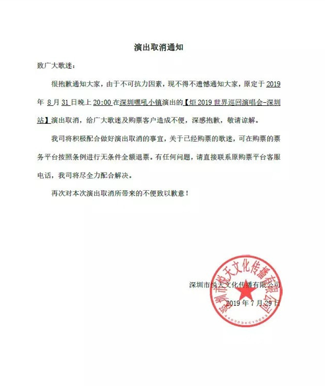 炬·2019世界巡回演唱会-深圳站,强势来袭 !