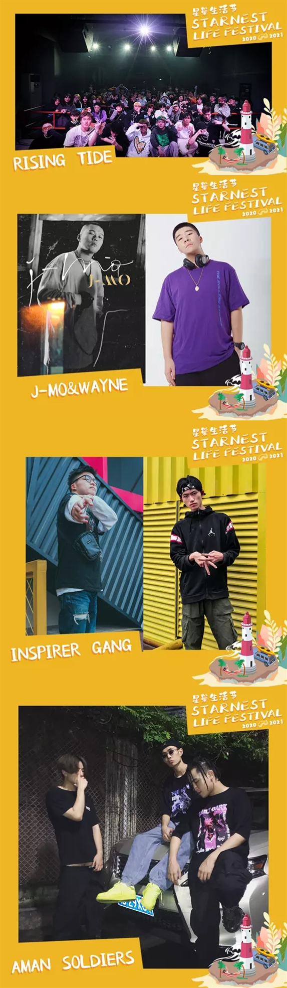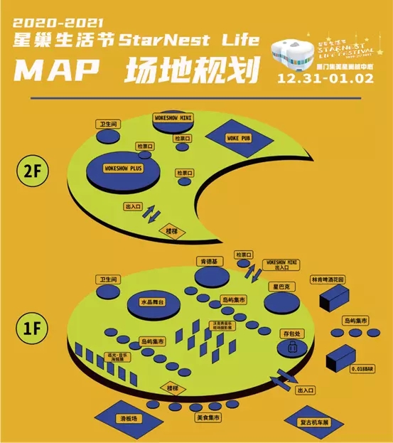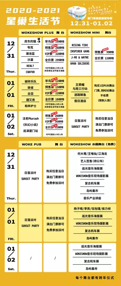 星巢生活节共分为4个舞台:WOKESHOW PLUS舞台、WOKESHOW MINI舞台、WOKESHOW 水晶舞台和WOKE PUB。