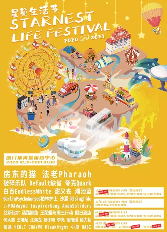 厦门星巢音乐节,本场演出严禁携带易燃,易爆炸和管制刀具等危险物品,硬质饮料等入场。文明观看演出,遵守现场秩序,严禁吸烟、随地吐痰、乱丢垃圾、投掷杂物。感谢您的支持!