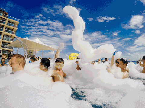 一种流行于欧美国家最新的时尚派对代表,现场泡沫一直喷洒和倾吐在狂舞的人群身上,直到你被淹没快到脖子的高度。这听起来似乎有点可怕,其实它是最棒和最happy的, 为派对增加了无穷的乐趣。