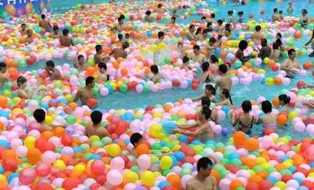 随着超强的电音的节奏,一万颗五颜六色的气球将同时抛进泳池,准好了吗?