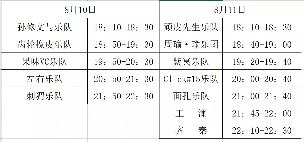 演唱时间表