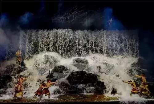《金面王朝》为了配合剧情需要,特别打造了世界最先进的水系统,能够在短短几分钟的时间在舞台上爆发一场洪水,让数百吨洪水瞬间吞没整个舞台,现场感无出其右。