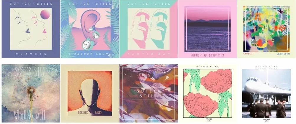 Softer Still的名字由来也是一场美丽的邂逅:鼓手兼制作人Ollie在比利时小镇滑铁卢的火车上播放着Big Troubles的专辑 《Romantic Comedy》,耳边反复传来《Softer Than Science》 中的歌词 "Softer and softer still" 。Ollie觉得歌词非常有意境, 马上跟乐队提名称,随即所有成员都认为Softer Still从美学意义 上同乐队的风格氛围完美匹配。 乐队第一首单曲《New Age》便充满了扑朔迷离的吉他声和若即若离的人声,Grant的男声在耳边轻柔诉说时,Ellie飘逸的女声又营造了幻想氛围,无时无刻不让人感受到浪漫星空。 Softer Still的音乐整体流露出明朗梦幻之风,却无丝毫冒犯之意。