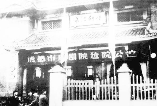 前身为悦来茶园,始建于1908年(光绪三十四年),至今已有近100年的历史。"悦来"取自《论语•子路》"近者悦,远者来"之意,期待远近的观众和茶客都来光顾。旧址为老郎庙,相传是成都金堂老艺人魏长生筹资兴建的川剧艺人汇集的场所。清代末年,周孝怀集股银八万两,成立了悦来公司,将老朗庙改建为悦来茶园,由当时著名的川剧班社"三庆会"在此驻场演出。杨素兰、康子林、肖楷成、唐广体等著名艺人在此演出了大批精彩剧目。那时的悦来茶园不但是清末四川戏曲改良的大本营,也是社会公认的“川剧窝子”。