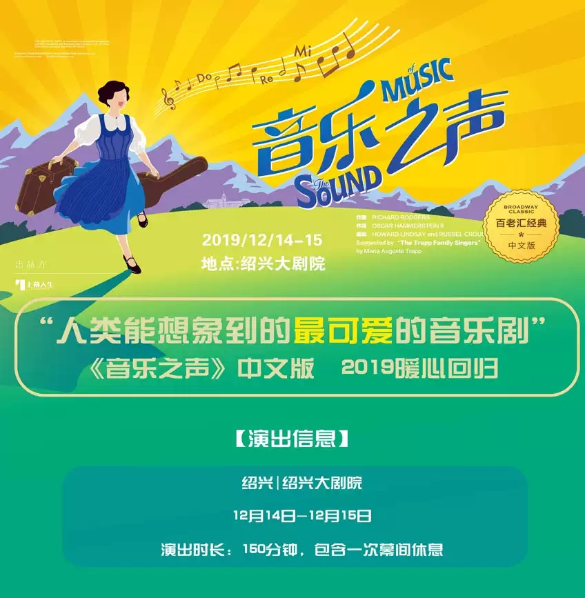 2019音乐剧音乐之声绍兴站,这可能是唯一一部所有歌曲都能让中国观众忘情跟唱的音乐剧,传唱半世纪的不朽名作,跨越三代人的美好回忆。