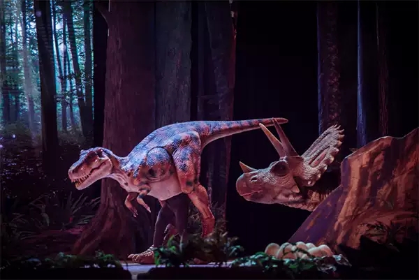 《恐龙归来》是大型高仿真科普儿童剧,采用欧美高仿真制作技术,使用环保硅胶制作恐龙表皮,其动物皮肤的弹性和立体感表现得淋漓尽致。