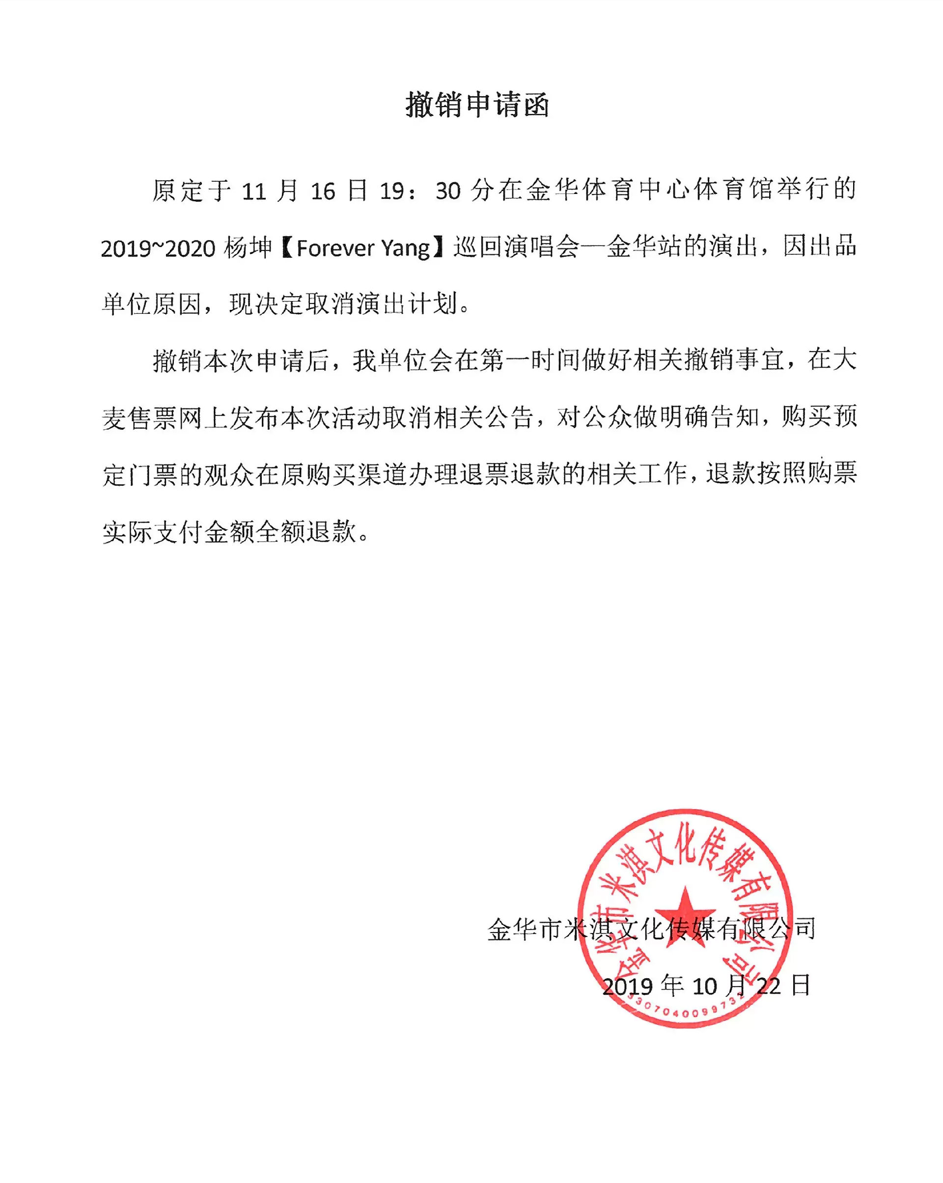2019杨坤金华演唱会,本场演唱会严禁携带矿泉水,饮料,雨伞,打火机以及易燃易爆、毒害性、辐射性、管制刀具等危险物品进场。请准时入场,配合好安检人员检票,一人一票,对号入座。文明观看演出,遵守现场秩序、请勿翻越隔离设施,入场前请将手机全程调为振动或者关闭状态。感谢您的支持。