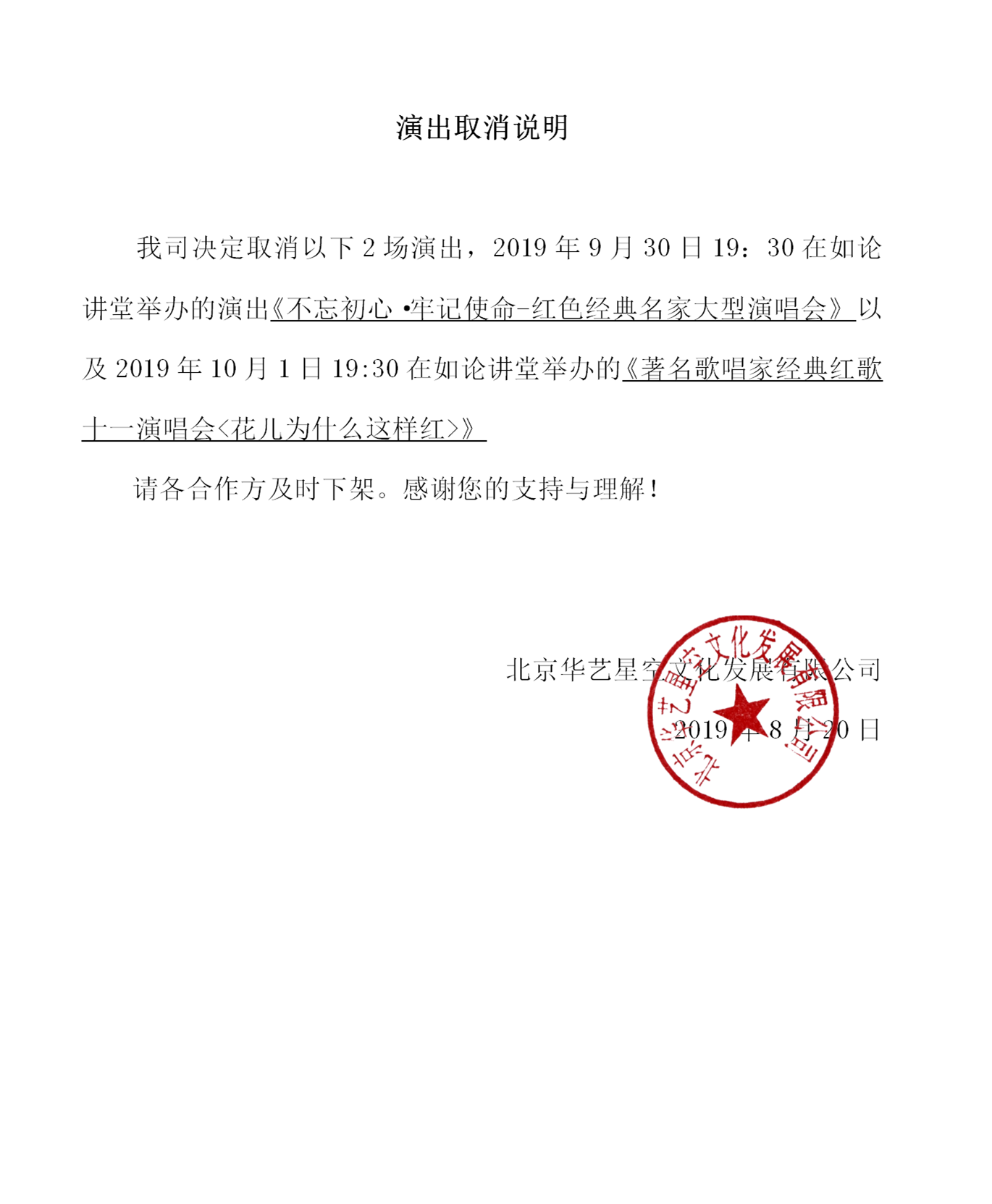 演出状态:演出结束