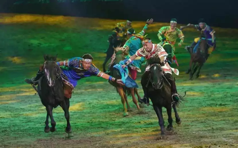 12匹狼进场 在《千古马颂》节目中登场那种正酣场面你见过吗?来2019话剧千古马颂呼和浩特站让你见到这波澜壮阔的的马群登场与人们一起共同演绎的节目。