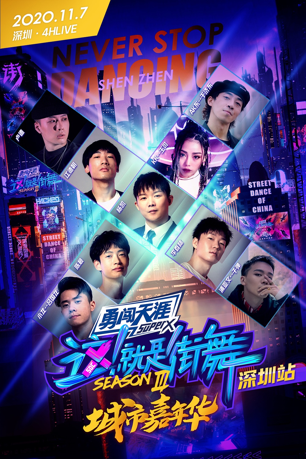 街舞在我国正处于快速发展阶段,逐渐从小众走向大众。热爱跳舞的街舞爱好者基数也逐年激增。《这!就是街舞》的线下衍生活动--Never Stop Dancing城市嘉年华,就是基于民众对街舞文化的热情,邀请这街人气舞者,在北京、上海、广州、深圳、成都等地展开巡回演出,呈现中国街舞新水准,为街舞风潮再度加一把火。