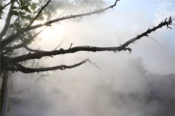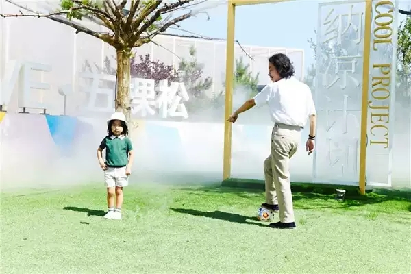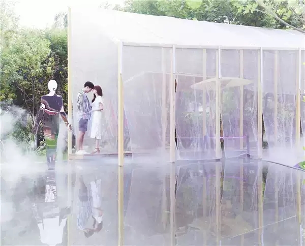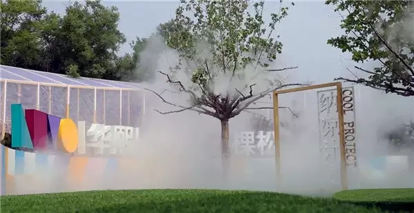 「纳凉-雾花空树」使用现代科技,将水雾和大树融为一体,让观展者静静地穿行在雾中,体验如科幻电影一般的虚实交加。打开感官,感受水和土壤的孕育力量。