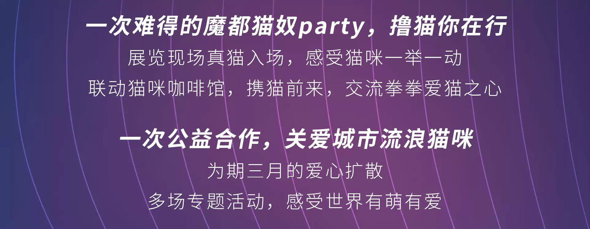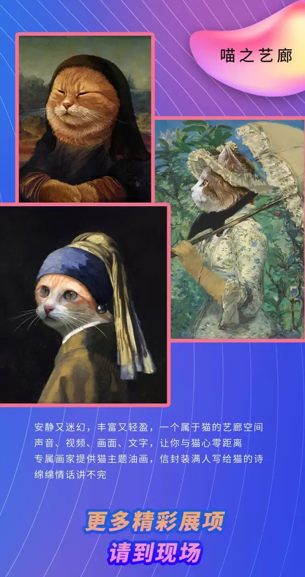 2019猫的异想世界上海站,本场展览请勿携带饮料、食品等入场观展,观展过程中可以使用电子设备进行照相、录像,但不建议使用闪光灯、三脚架。请勿擅自拍打或破坏展品及展场设施,如有损坏事宜,需照价赔偿。感谢您的支持!