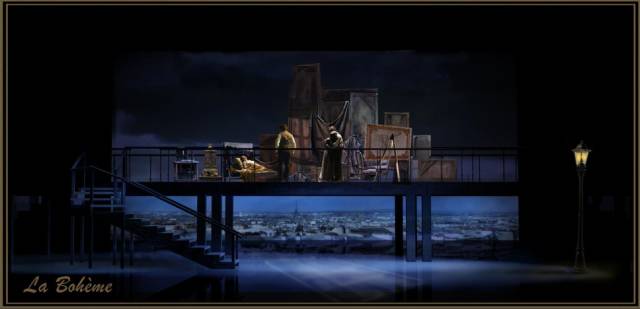 诗人鲁道夫、画家马切洛、音乐家萧纳尔和哲学家科林共同居住在巴黎一所破陋的阁楼上,生活虽然贫苦,但充满自信。一天,鲁道夫在家巧遇绣花女咪咪,一见钟情,把她带到朋友们正在聚会的酒馆中。马切洛过去的情人穆赛塔带来了一个倾倒于她的老头阿钦多罗,但她想和马切洛言归于好,就设法把阿钦多罗支开,投入了马切洛的怀抱。数月后,两人的感情又日趋恶化,而咪咪和鲁道夫之间的爱情,也濒于破裂。咪咪得了严重的肺病,当她来和鲁道夫见最后一面时,又重新和好起来,并计划着将来的一切。但咪咪终于病重死去,鲁道夫悲痛欲绝。穆赛塔和马切洛因此深有所感,重新结合起来。