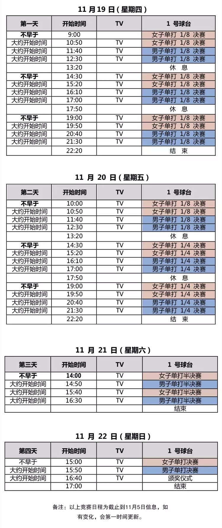 赛事日程