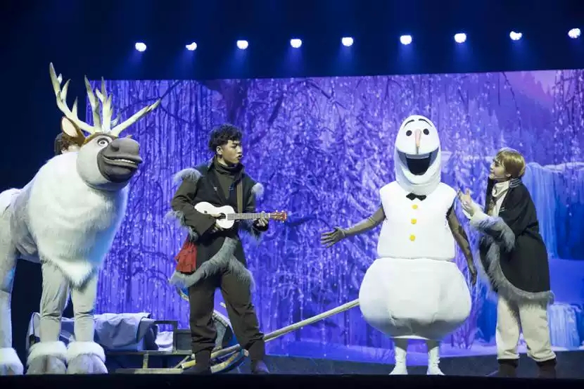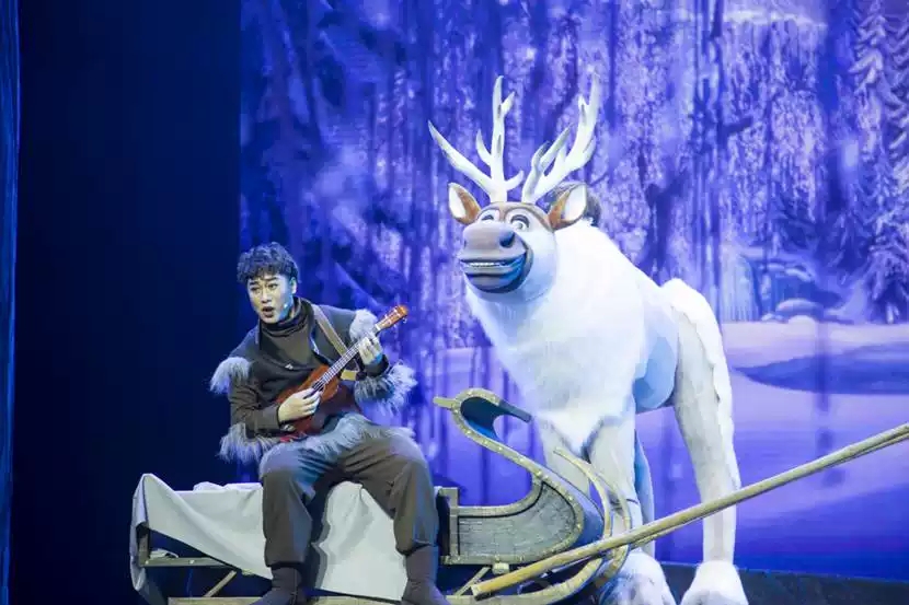 亮点一 经典舞蹈片段,奇幻的城堡、黑暗的森林、聪明的驯鹿、可爱的雪宝,童话世界的经典形象齐聚首,让您大呼过瘾,和艾尔莎一起走进冰雪的童话世界!