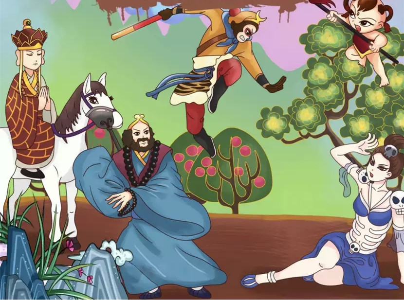 青年和尚玄奘自东土大唐往西天取经,一路上,他先后收了孙悟空、猪八戒、沙和尚三个徒弟。就这样,师徒四人一起踏上了取经之路。为了到达西天取回真经,师徒四人一路降妖除魔,历经磨难,这一天,他们来到了白虎岭山脚下。白虎岭上住着一个采天地灵气,受日月之精华而成的妖精——白骨精,她自从知道吃了唐僧肉就能长生不老,就一直在等唐僧的到来。终于,这一天来了。