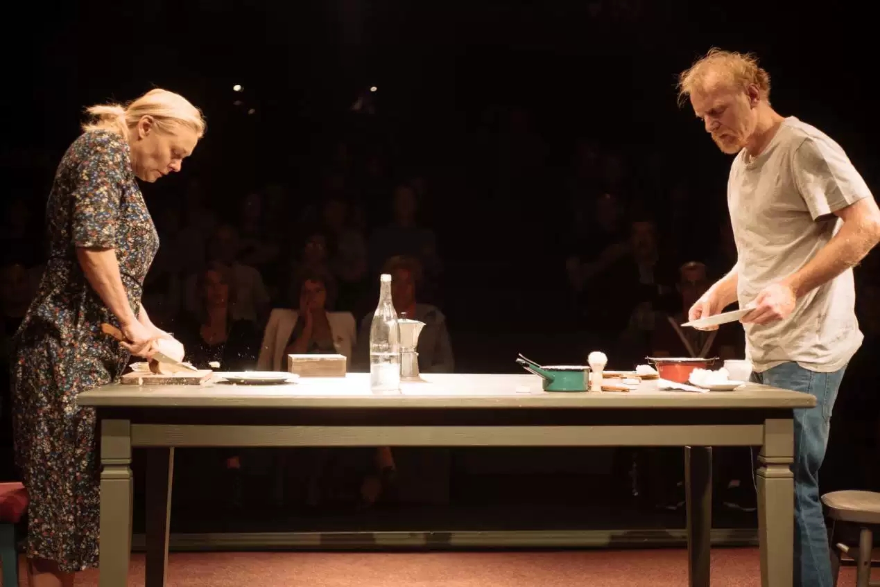 拆掉一堵墙,增加了男主人公,这一版的独幕话剧《早餐之前》做了大胆的尝试,在保留女主人公所有台词戏份的基础上,男主人公具象化,增加了角色互动,延展了剧情,也让失意又失和夫妻间的晨间例吵变得更具张力。最终看到这出悲剧性的婚姻终得其果时,不由得想起太宰治的话,“生而为人,对不起。”