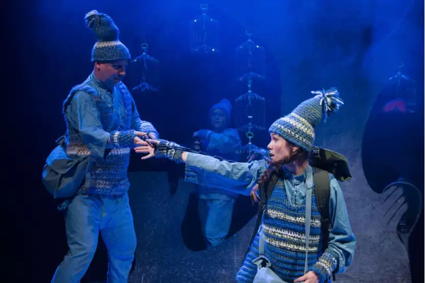 北爱尔兰顶尖儿童剧院精心打造舞美,沿用原著绘本的视觉基调,运用深邃的蓝灰色树林搭配紫红色艳丽的小鸟,构筑出的神秘、迷人的戏剧世界。通过音乐、魔术、木偶,幽默又启发想象的肢体语言,以及层层递进的冒险情节,《Shh! We Have A Plan》以环保为主题,启发孩子们用心对待动物,仁慈对待自然,让其懂得收获与代价、爱与善。