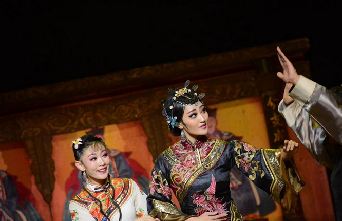 2、团扇舞,一群女子迈着轻巧的步子像溪流一样在舞台淌过,灵活的动作一气呵成,将古代的小脚文化体现的淋漓尽致。也更加衬托出殷家的富贵。