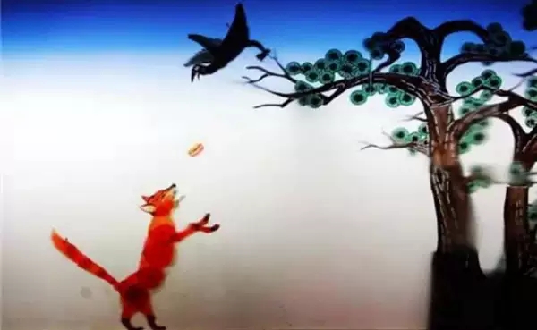 有一天,有一只小狐狸很饿,发现树上有一只乌鸦叼着一块肉,狐狸很想吃,开始绞尽脑汁想各种办法,狐狸对乌鸦说:“乌鸦哥哥,听说你的歌喉很美,能给咱唱个不?”乌鸦一听,心里很乐意,就开始唱了,一开口,肉掉了下去,狐狸叼着肉就跑了,乌鸦唱的很入迷,唱完之后才发现狐狸已经不见了,他突然明白了什么。