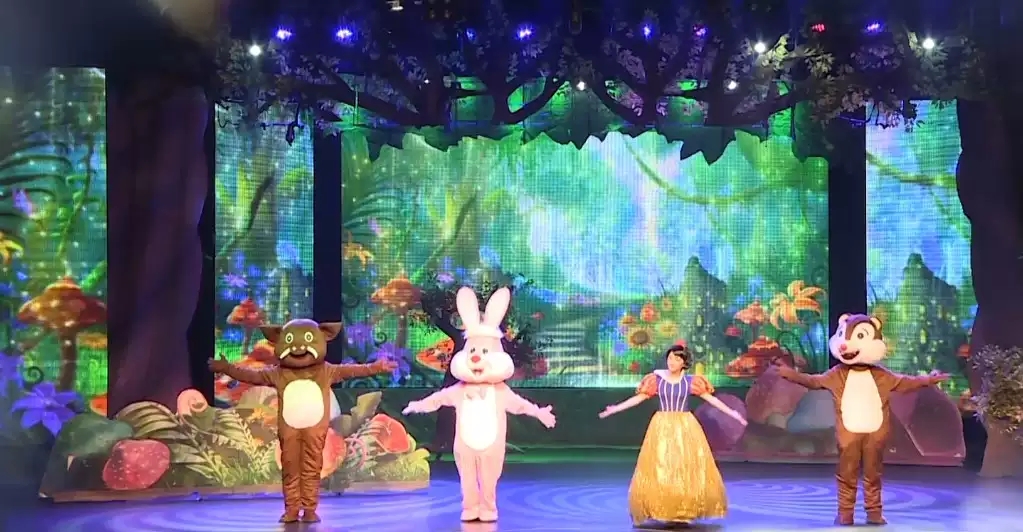 白雪公主是个美丽、善良的女孩,所有人都喜欢她。她的继母却是个恶毒、丑陋的女人,因羡慕、嫉妒白雪公主的美丽,一次次派出神秘人物,使用魔法陷害白雪公主。小松鼠、小兔子和森林的七个小矮人以及帅气的王子开始了一场拯救公主的历险之旅。到底他们是怎么战胜王后和神秘人物?白雪公主会经历什么历险故事?我们演出当天就能揭晓……
