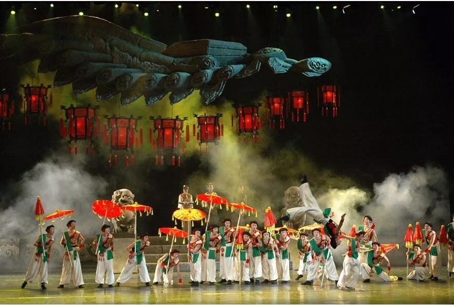 舞剧《一把酸枣》一直以来被誉为中国舞剧史上里程碑式的作品,而它所创造的中国舞剧史上最大写实舞美场景——横跨整座舞台的青砖老城墙、红灯高挂的大院深巷、“汇通天下”的巨型牌匾、600套美轮美奂的服装、700棵营造诗意幻境的酸枣林、残阳如血的茫茫西口……还有高墙下的泪眼离别、酸枣林的如梦如幻、古道口的生死绝唱,一段爱情佳话被演绎得淋漓尽致。