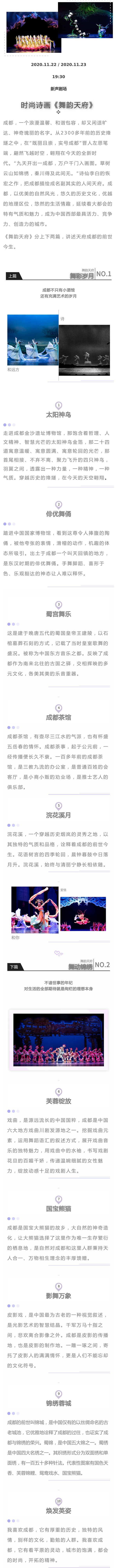 歌舞剧《舞韵天府》成都站,这将是一场带给观众全新视听体验的全新诗画歌舞剧,天府文化具有代表性点位都将通过极具现代审美的舞蹈进行全方位呈现。“舞林豪华阵容”加盟助阵,将为观众呈上极具震撼的视听盛宴。